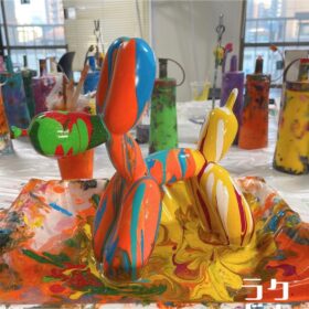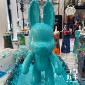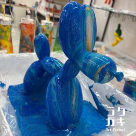 ラクガキ-Art Project- KOCHIは、お子さまからご高齢の方まで家族みんなで楽しめる場所です。好きなフィギュアと色を選び、絵の具を垂れ流して完成させるため、難しい作業はありません。初めての方もアートに触れたことがない方でもご参加いただけます。